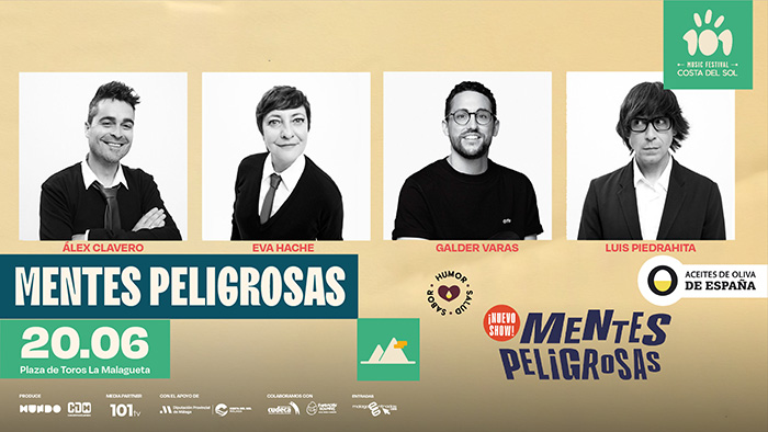 Mentes Peligrosas, una de las mejores comèdies nacionales, con Álex Clavero, Eva Hache, Galder Varas y Luis Piedrahita estaran en la en la Plaza de Toros de Málaga el próximo 20 de junio de 2026 dentro del 101 Music Festival Costa del Sol.